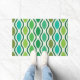 Se trata de un elegante estilo retro retro moderno de mediados de siglo, con diferentes tonalidades de verde y verde azulado sobre fondo blanco. Es un doormat de gran belleza para cualquiera que ame los diseños geométricos retro