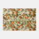 Ilustracion Persimmons. Frutas, flores y hojas en ramas. Patrón sin foco. Color de fondo personalizado. Texto personalizado.