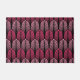 Doormat en papel pintado de estilo Art Déco basado en una pluma estilizada: rosa fucsia profunda y rosa suave, sobre fondo negro