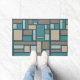Felpudo Patrón de Rectángulos del Medio Siglo Verde azulad