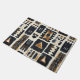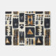 Diseño de tela de barro africana pintada a mano con formas geométricas audaces en tonos tierra de negro, marrón y crema.