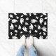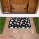 Bienvenido a los huéspedes con estilo festivo con este felpudo de Halloween que presenta un audaz patrón fantasma sobre un fondo negro. El sencillo diseño en blanco y negro combina el estilo moderno y minimalista con la diversión espeluznante y puede personalizarlo con el nombre de su familia para un toque especial.
