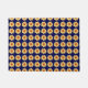 Gran felpudo decorativo que muestra la foto de una pequeña flor Dahlia amarilla en un fondo azul marino e impresa en un patrón de repetición. Uso en interiores o en áreas cubiertas de entrada. ¡Un bonito diseño floral!