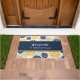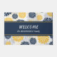 Esta alfombra de puerta personalizada de bonito presenta un patrón de flor azul marino y dorado como borde superior e inferior. En el centro hay un cartel azul marino a juego, bordeado de líneas doradas. En el centro está tu texto en blanco. ¡Negrita y hermosa! Asegúrese de ver los productos que coinciden en nuestra tienda. Crédito gráfico de diseño floral a Malachi Designs on Etsy.