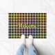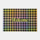 Cara de gallo arcoiris. Patrón sin foco. Color de fondo personalizado. Texto personalizado.