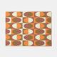 Este patrón artístico abstracto inspirado en la era atómica tiene ovaciones dentro de rectángulos en varios tonos de naranja y marrón.