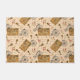 patrón con llaves, escritos, bicicletas antiguas, cartas postales y flores