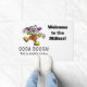 Payaso Personalizado. No da miedo. Los brazos se estiraron. "¡Ooga Booga! en un moderno tipo de letra negra con "Bueno...tal vez no" debajo. Hay un mensaje a la derecha de que puedes cambiarte a personalizar (¡Bienvenido a los Millers!)