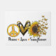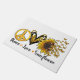 "Paz, amor, girasol" Doormat es una gran adición a cualquier decoración. Busque artículos de coordinación en nuestras colecciones de vida Inspiradoras.