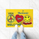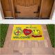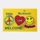 This Peace, Love & Happiness rectangular door mat features playful peace, heart, and smiley icons set against a warm golden yellow background. The green script Family Name adds a personal signature touch, while “WELCOME” ensures your entryway feels inviting and cheerful.
