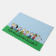 Echa un vistazo a esta alineación de la pandilla de los maníes, con Schroeder y Lucy, Linus con su manta, Charlie Brown y su hermana Sally, Pigpen, Franklin viendo la danza Snoopy y Woodstock volando sobre sus cabezas.