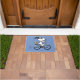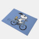 Pedal into classic charm and fun with this adorable blue floor mat, featuring Snoopy and Woodstock on a bicycle! This vibrant mat showcases a delightful line-art illustration of Snoopy, wearing sunglasses, happily riding a vintage-style blue bicycle with Woodstock perched safely behind him. The dashed lines behind the back wheel suggest motion, adding to the playful scene, all set against a cheerful light blue background. This versatile mat is perfect for adding a nostalgic and inviting touch to any room, entryway, or even a child's play area. This iconic and heartwarming design is a must-have for any Peanuts fan looking to brighten their home!