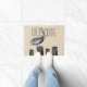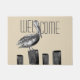 ¡Salude a sus huéspedes con esta estera de puerta preciosa que ofrece un ilustracion incompleto blanco y negro del pelícano y un fondo coloreado personalizado!