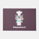 El gatito del chef es muy amable, con la palabra "perfecto" sobre un color de fondo morado berenjena.