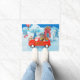 Felpudo Perro amarrado en Navidades con nieve en camión de