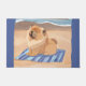 Un diseño dulce para la decoración y el desgaste de verano. La pequeña vaca está bronceándose en la playa con una expresión alegre en la cara.