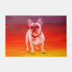 Un lindo perro Bulldog francés sentado con un fondo colorido, una idea de regalo perfecta para alguien que ama esta raza de perro.