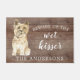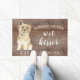 Es gracioso tener cuidado con el besador mojado", alfombra de la puerta del perro Cairn Terrier ambientada en un rústico fondo falso. Visite nuestra tienda para ver una gran variedad de panes de perro