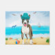 El perro lindo sentado en la playa es un regalo perfecto para alguien que ama esta raza de perro.