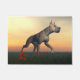 Perro de great dane que defiende en la hierba el tiempo nublado