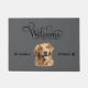 Este doormat de perro de Golden Retriever es el regalo perfecto para cualquier amante del perro. Este diseño se completa con las palabras "Bienvenidos a nuestro hogar", un lugar para añadir tu nombre y el nombre de tu perro, y un adorable gráfico de acuarela Golden Retriever. ¡Disfrútalo!