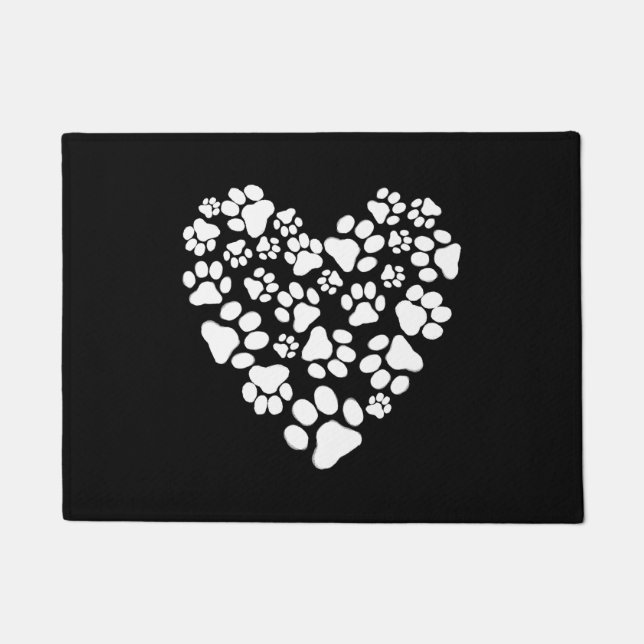 Pinta de perro o gato en forma de corazón. Es una alfombra de bienvenida perfecta para los amantes de las mascotas. Visita el mundo Doodle de Jenn para más felinos y felinos y decoración original de la casa de los amantes de los animales.
