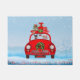 Felpudo Perro Pinscher en miniatura en auto con Santa Clau