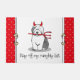 Raro perro pastor inglés - Pequeño y lindo diablo con cuernos rojos y horquilla. Está en la lista traviesa. Derechos reservados © Angi Laframboise. Graciosos regalos de personalizado de perros de vacaciones para los amantes del perro.