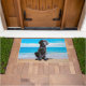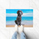 Un lindo perro de Weimaraner sentado con un fondo colorido, una idea de regalo perfecta para alguien que ama esta raza de perro.