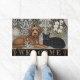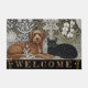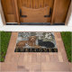 Doormat de bienvenida con ilustraciones de época de perro y gato negro marrón rodeadas de un hermoso cardo, orquídeas blancas, pasto de pampas y blancos de invierno exóticos enfundados en oro de Art Nuovo siguiendo el estilo de William Morris. Un regalo fabuloso para los dueños de perros y gatos. Texto de bienvenida fácilmente personalizar. Para ajustes de versión más pequeños (redimensionados), por favor vea en mi tienda.