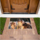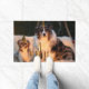Design presenta una fotografía humorística de perros vestidos para celebrar Nochevieja. Están sentados en una manta peluda y llevan gorras fiestas. Una botella de champán está abierta delante de ellos.