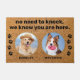 ¡Presentamos la estera de puertas perfecta para todos los amantes del perro! Este moderno y elegante alfombra es la manera ideal de recibir a los huéspedes en su casa con un toque de humor y buen gusto. El falso material de coco es duradero y amigable con el medio ambiente, mientras que las huellas de la pata y la lúgubre frase "No hay necesidad de tocar, sabemos que estás aquí... los Mascotas" le traerán una sonrisa a la cara a cualquiera. Este felpudo presenta espacio para dos fotos de tus queridos mascotas -ya sean perros, gatos o cualquier otro amigo peludo- junto con sus nombres personalizados. Esta alfombra de puerta no es solamente una gran adición a tu propio hogar, sino que también hace un regalo perfecto para el calentamiento de la casa para mamás y papás de perro compañeros. Es la manera perfecta de mostrar tu amor por tus peludos amigos y hacer una declaración a la entrada de tu casa. Ya sea que esté en el porche o en la puerta de entrada, esta alfombra le dará una cálida bienvenida. Entonces, ¿por qué no tratarte a ti mismo o a un compañero de perro con este regalo único y adorable? Es la manera perfecta de alegrar cualquier hogar y mostrar tu amor por nuestros amigos de cuatro patas.