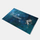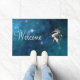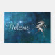 Hermoso ilustracion unicornio de estilo herálgico vintage situado sobre el fondo celeste del cielo. Personalizar con nombre u otro texto con tipo de letra de script blanco.