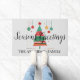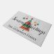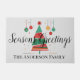 Árbol de Navidad colorido de estilo retro con adornos colgantes en el borde superior. Personalizar con su propio saludo de vacaciones y nombre o mensaje especial de su empresa o grupo.