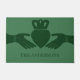 Este doormat tiene un sencillo ilustracion a mano de un corazón de barro irlandés que tradicionalmente se encuentra en los anillos de barro. El gráfico se encuentra en un cazador oscuro o en un bosque verde sobre un fondo verde más claro