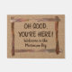 Para los campistas de RV que siempre están felices de ver compañía en la puerta, esta alfombra de puerta dice "¡Oh, bien, estás aquí!" y bienvenidos a nuestra plataforma. El apellido de la familia que pertenece a la plataforma puede ser personalizado, para un verdadero toque personal. En un tipo llamativo y agradable de color marrón oscuro, dentro de un marco de "rama de árbol" dibujado a mano, todo sobre un fondo de color burlap marrón. Haz de tu casa móvil un lugar donde tus compañeros de camping se sientan como en casa.