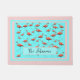 Esta alfombra de puerta temática de verano tiene flamencos rosas sobre un fondo azul. Ideal para disfrutar de la decoración de su casa durante las vacaciones de verano. Personalizar tu nombre editándolo en el listado para personalizarlo. Este es un diseño sencillo pero elegante que puede usar para crear el suyo propio con nuestra plantilla.