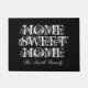Personalizado doormat con apellido Hogar Dulce Hogar. Añade tu propio apellido personalizado. Plantilla de tipografía de época con letras de guión elegantes. Diseño de alfombras de puerta en blanco y negro. Disponible en mediano y grande. Hermosos regalos de decoración de casa para amigos, familia, pareja, etc.