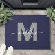 Crea Tu Propio Personalizado Elegante Navy Blue Gray Monograma Script Nombre Doormat. Este elegante portero femenino aporta un toque cálido y acogedor a cualquier entrada, con un encantador diseño de monograma sobre un fondo azul marino profundo con una letra inicial gris y un nombre de escritura blanco que le da un toque muy personalizado. Ideal para los nuevos propietarios, recién casados o cualquier persona que desee agregar un toque de personalidad a su espacio, este elegante felpudo montado en color gris y marina es el regalo perfecto para fiestas, Navidades o cualquier ocasión especial. Ya sea para una casa de hermandad, dormitorio, apartamento, dormitorio o casa familiar, este felpudo mezcla el estilo atemporal con un toque personalizado, creando un artículo de declaración de moda que es tan práctico como bonito. ¡Ideal para mostrar tu estilo justo en la puerta!