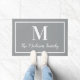 Fresque la entrada de su casa con este elegante doormat de monograma personalizado en colores neutros, gris medio y blanco. Nota: los colores se pueden modificar. Personalice con el apellido de su familia en script y un primer monograma de estilo serif. El diseño incluye un sencillo borde enmarcado.