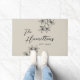 Este doormat personalizado presenta un diseño floral ilustrado digitalmente a mano en un fondo beige neutro. Personalizar fácilmente el nombre de la familia y la fecha establecida mediante la función de personalización. Perfecto para regalos de boda, regalos de Navidades de parejas, aniversarios o mimos domésticos.