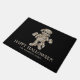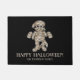 Este doormat temático de Halloween muestra el ilustracion original de la personalizado de Destei de un personaje de una momia espeluznante con un color de fondo negro. Bajo la imagen se lee "¡Feliz Halloween!" junto con un área de texto personalizable para un nombre de familia, por ejemplo.
