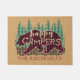 la arpillera rústica que acampa de los campistas contentos lleva el bosque del pino de la tela escocesa, familia conocida de los campistas personalizada