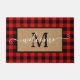 Dormitorio rústico contemporáneo con estampado de chapa negra y roja y cálido saludo de bienvenida escrito en una elegante y elegante fuente caligráfica. Con espacio para el personalizar o personalización con un monograma familiar o inicial de su elección. Original decoración de estilo sencillo para decorar el porche delantero o la puerta de su casa de campo, cabaña de troncos, refugio de montaña, campo de pesca, casa de vacaciones en el lago o río.