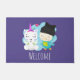 Felpudo Personalizados felinos: unicornio y pájaro felices