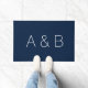 Personalizar, personalizar alfabeto monograma inicial Doormat letras blancas, fondo azul marino