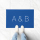 Personalizar, personalizar alfabeto monograma inicial Doormat letras blancas, fondo azul