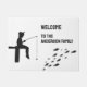 Motivo de Doormat con un tema de pesca. Esta muestra a un joven pescador con una escuela de pescado. Añada su apellido y hágalo un atractivo en su entrada.