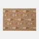 Doormat en un patrón de pescado retro y moderno de mediados de siglo, en tonos tostados, rojos, beige, marrón y blanco, sobre un fondo marrón de cacao claro