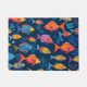Patrón de peces tropicales coloridos en la dorsal de fondo azul